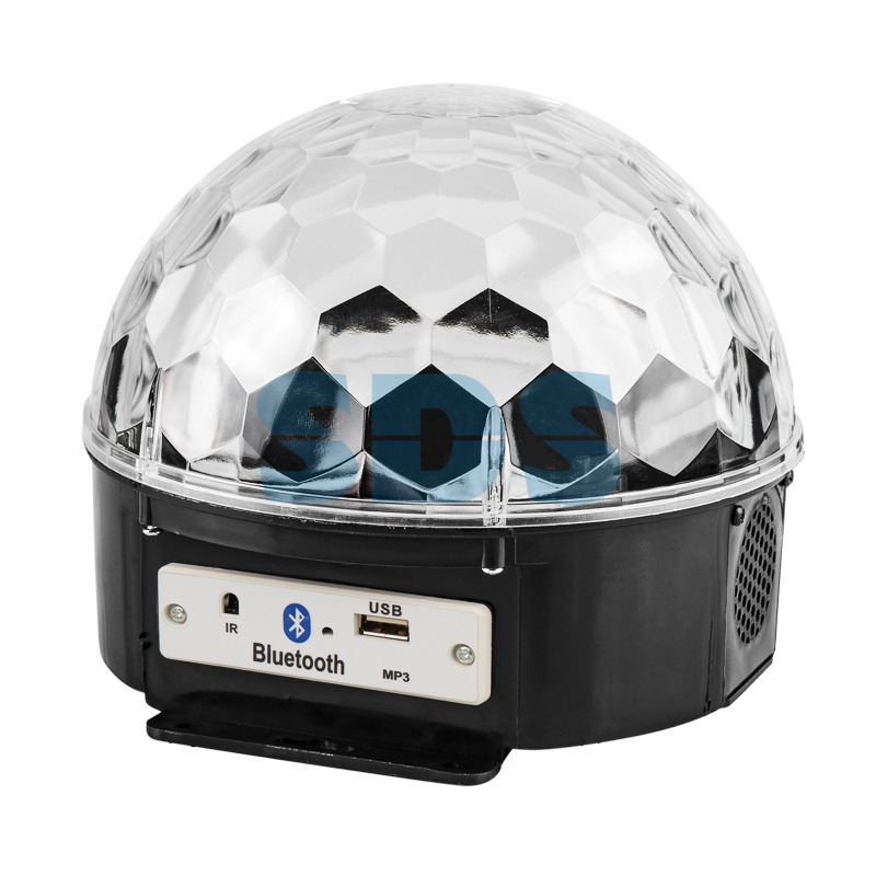 Светодиодная система «Диско-шар» с пультом дистанционного управления и функцией сопряжения через Bluetooth — уникальное устройство для создания эффекта светомузыки, которое поможет организовать веселую вечеринку в любом месте, где есть электрическая розетка. 6 ярких диодов RGB светятся разными цветами, а вращающийся купол разносит задорные блики.